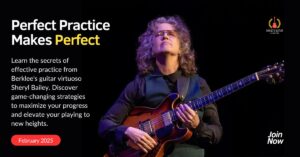 The assistant chair of the Berklee Guitar Department, Sheryl Bailey conducted a masterclass for Chase’s Guitar Academy back in February 2025. She divides a perfect practice routine into four blocks: In the first part of the masterclass, Sheryl begins with the importance of being honest with your playing, your challenges (enemies to getting a perfect … Continue reading Video Review: Perfect Practice Makes Perfect with Sheryl Bailey (Chase’s Guitar Academy)